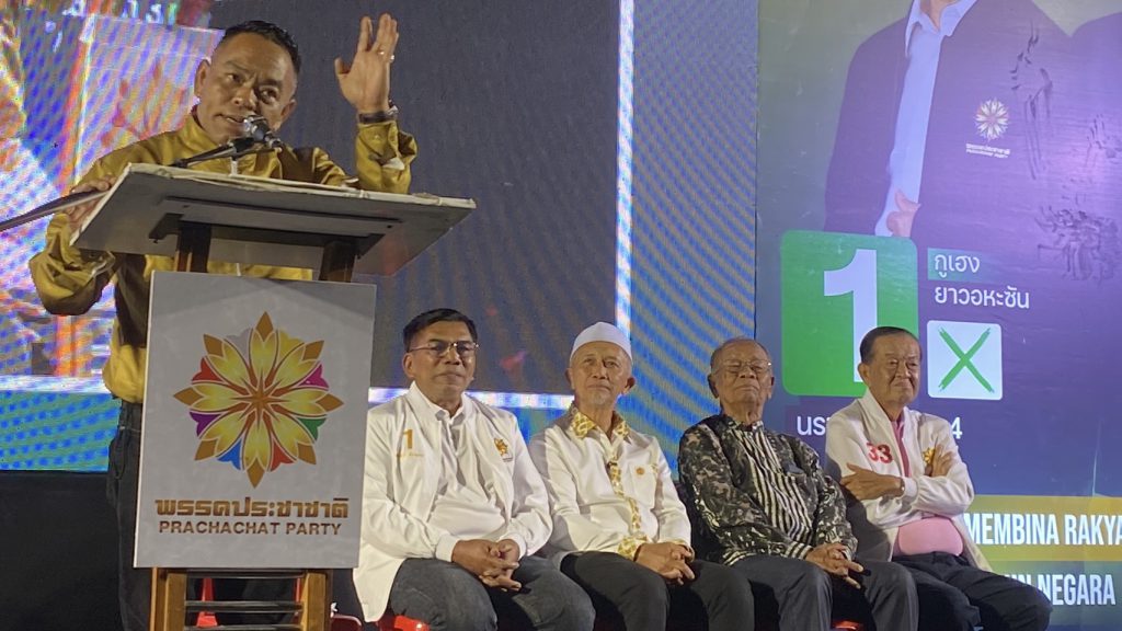 พร้อมด้วยแม่ทัพใหญ่ในพื้นที่อย่าง นายกูเซ็ง ยาวอหะซัน นายก อบจ.นราธิวาส และทีมผู้สมัคร ส.ส. อาทิ นายอับดุลการีม อัสมาแอ ผู้สมัครเขต 1 หมายเลข 2 นายสูเด็ง ตอเฮ ผู้สมัครเขต 3 หมายเลข 3 นายกูเฮง ยาวอหะซัน ผู้สมัครเขต 4