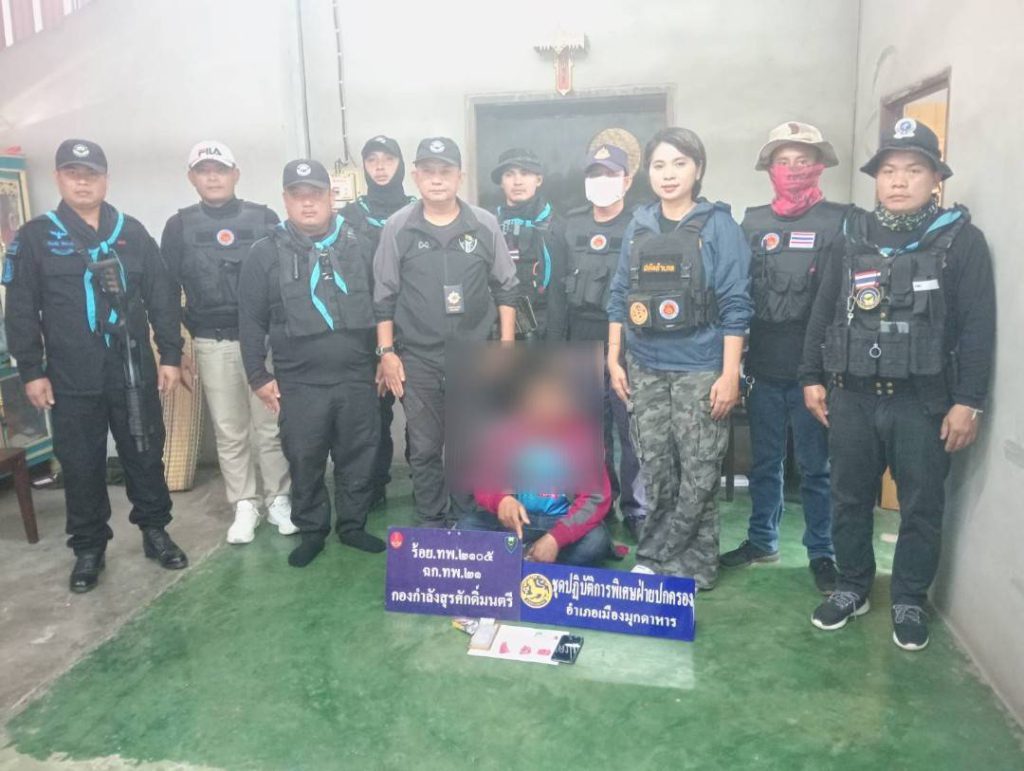 เมื่อวันที่ 23 พฤศจิกายน 2568 ร้อยโทวันชาติ เหมือนปืน ผู้บังคับกองร้อยเฉพาะกิจทหารพรานที่ 2105 หน่วยเฉพาะกิจกรมทหารพรานที่ 21 นำกำลังลงพื้นที่หลังรับรายงานว่ามีกลุ่มค้ายาเสพติดลักลอบจำหน่ายยาบ้าให้กลุ่มวัยรุ่นและแรงงานในเขตเมืองมุกดาหาร ในราคาที่เข้าถึงง่าย ส่งผลให้ชาวบ้านหวาดวิตกต่อสถานการณ์ที่ทวีความรุนแรงมากขึ้น