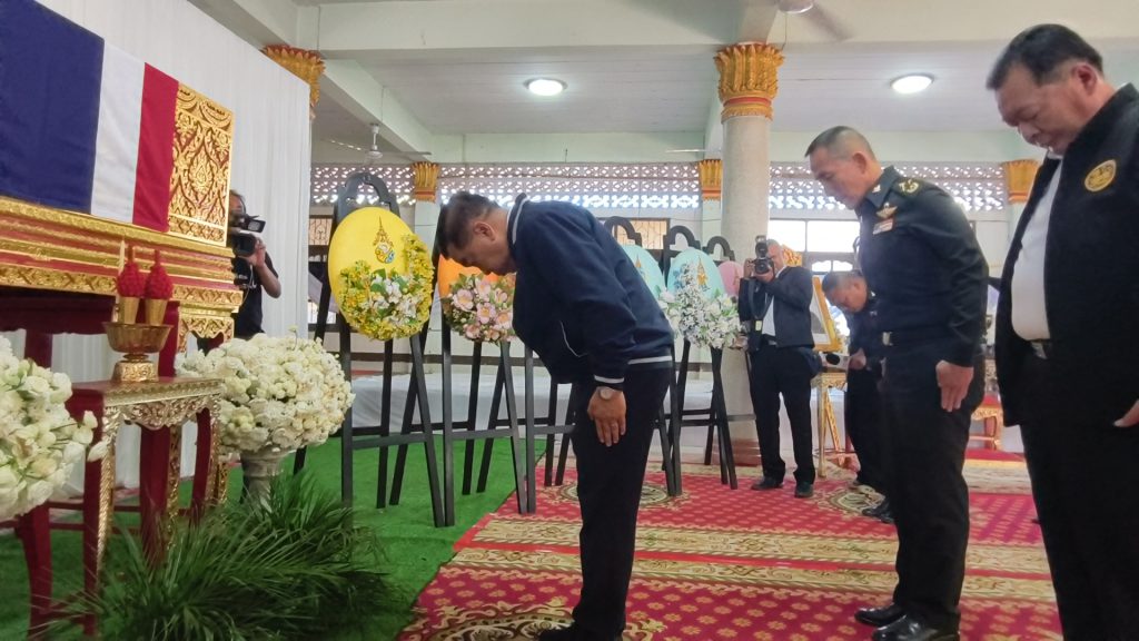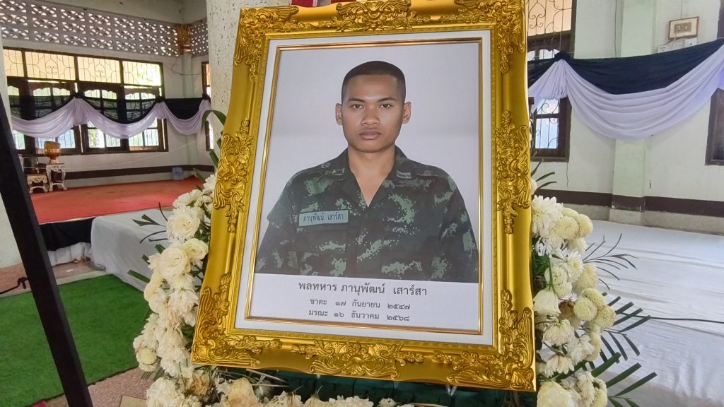 ***เมื่อวันที่ 23 ธ.ค. 68 ที่วัดกลาง ตำบลห้วยเหนือ อำเภอขุขันธ์ จังหวัดศรีสะเกษ พล.อ.ณัฐพล นาคพาณิชย์ รัฐมนตรีว่าการกระทรวงกลาโหม (รมว.กลาโหม) พร้อม พลเอก ธราพงษ์ มะละคำ ปลัดกระทรวงกลาโหม และคณะลงพื้นที่เข้าเคารพศพ และเยี่ยมให้กำลังใจครอบครัวของ พลทหาร ภานุพัฒน์ เสาร์สา หรือ พลทหาร วุ้น สังกัดกองพันทหารราบที่ 3 กรมทหารราบที่ 23 (ร.23 พัน.3) ที่สละชีพจากการปฏิบัติหน้าที่ป้องกันอธิปไตยของชาติ จากเหตุการณ์ปะทะบริเวณ สมรภูมิเนิน 350 อำเภอพนมดงรัก จังหวัดสุรินทร์ เมื่อวันที่ 16 ธันวาคม 2568 ที่ผ่านมา โดยมี นาย นายธาตรี สิริรุ่งวนิช รองผู้ว่าราชการจังหวัดศรีสะเกษ นำข้าราชการ พี่น้องประชาชนให้การต้อนรับ