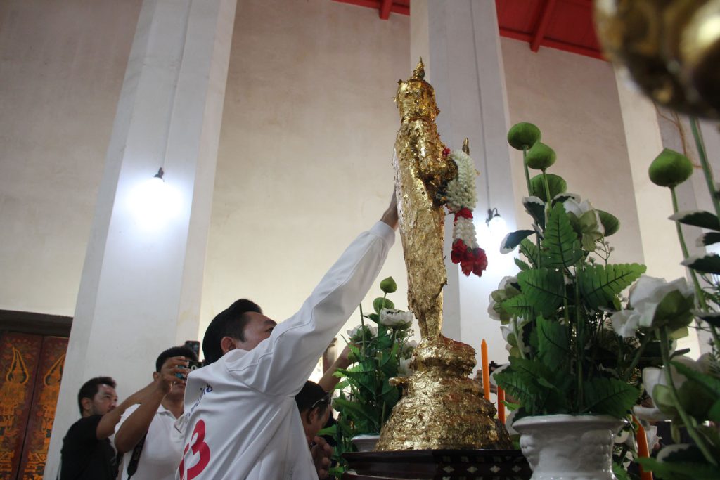 โดยเลือกฤกษ์มงคลเวลา 08.23 น. ซึ่งสอดคล้องกับหมายเลขพรรค เบอร์ 23 ในการกราบไหว้ขอพร เพื่อความเป็นสิริมงคลและกำลังใจในการทำงานเพื่อประชาชน