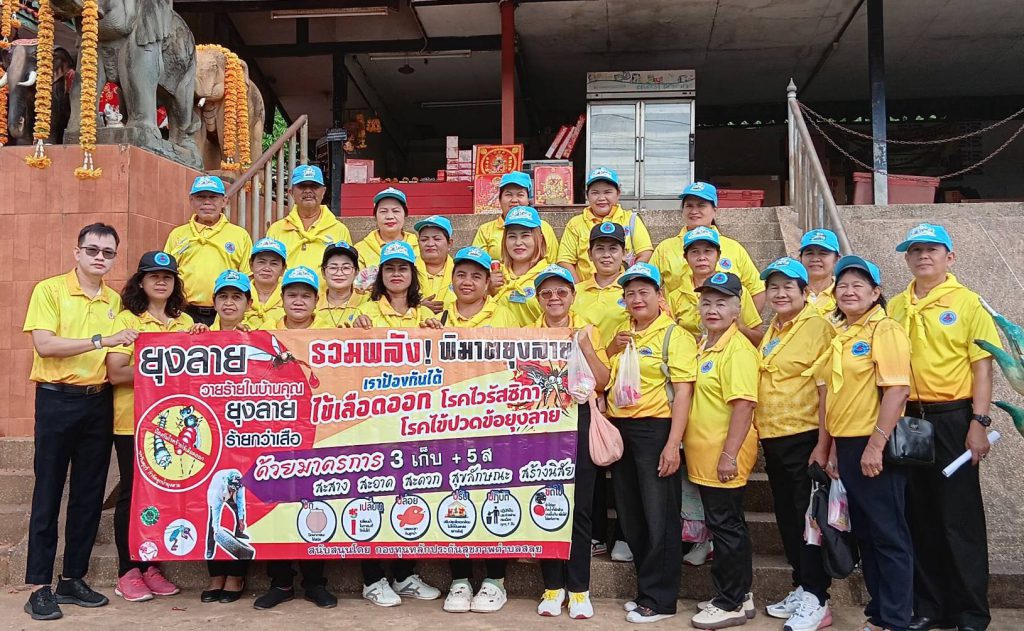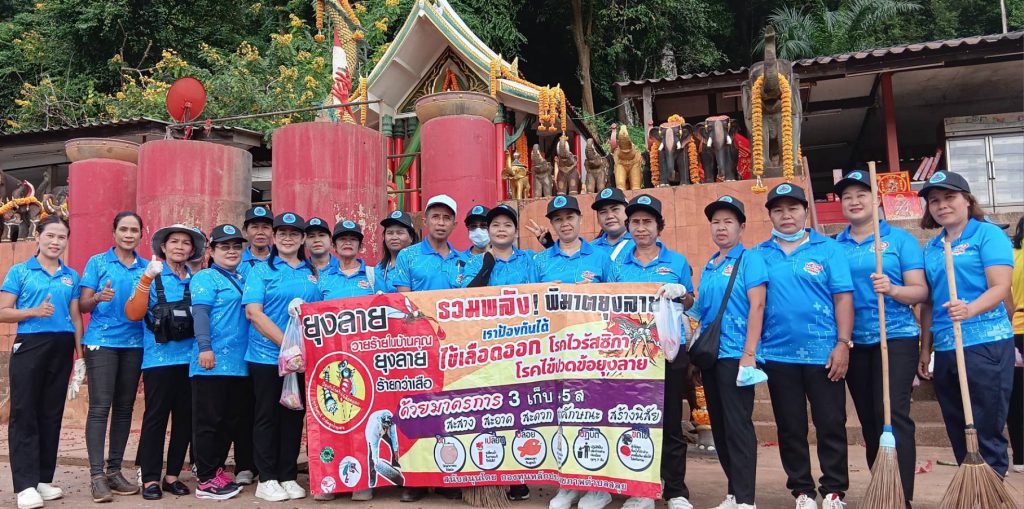 โดยจัดกิจกรรมจิตอาสารณรงค์ป้องกันและควบคุมโรคไข้เลือดออก การให้ความรู้สร้างความตะหนักและมีส่วนร่วมในการป้องกันและควบคุมโรค การสำรวจและทำลายแหล่งเพาะพันธุ์ลูกน้ำยุงลาย กิจกรรมแจกทรายกำจัดลูกน้ำ ณ ลานค้าชุมชนพ่อตาหินช้าง หมู่ที่ 2 หมู่ที่ 6 หมูที่ 3 และหมู่ที่ 8 ตำบลสลุย ซึ่งเป็นแหล่งซื้อของฝากประมาณ 100 ร้าน