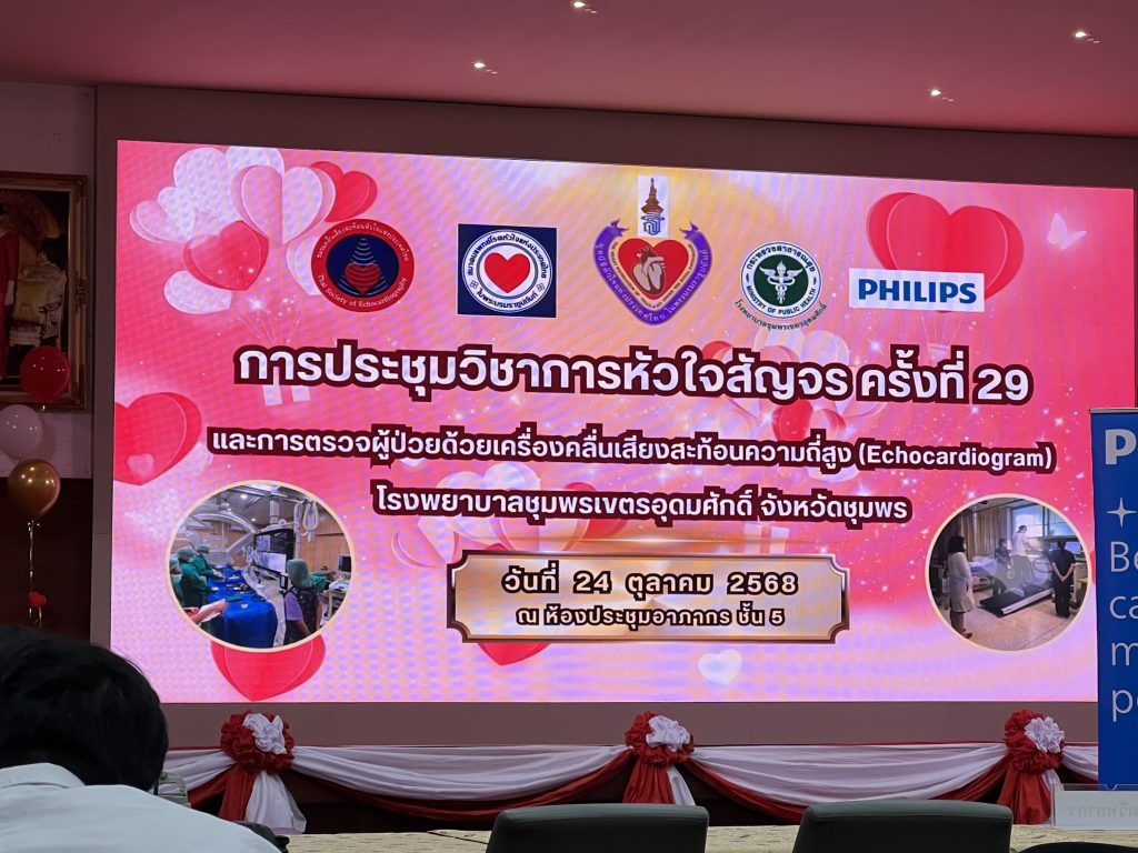 โดยมีบุคลากรสาธารณสุข วิทยากร นักศึกษาแพทย์ และสื่อมวลชนเข้าร่วม ณ โรงพยาบาลชุมพรเขตรอุดมศักดิ์ เพื่อขยายโอกาสการเข้าถึงการตรวจคัดกรองและการดูแลรักษาโรคหัวใจในพื้นที่ห่างไกล พร้อมพัฒนาศักยภาพบุคลากรทางการแพทย์ท้องถิ่นให้สามารถดูแลผู้ป่วยได้อย่างยั่งยืน