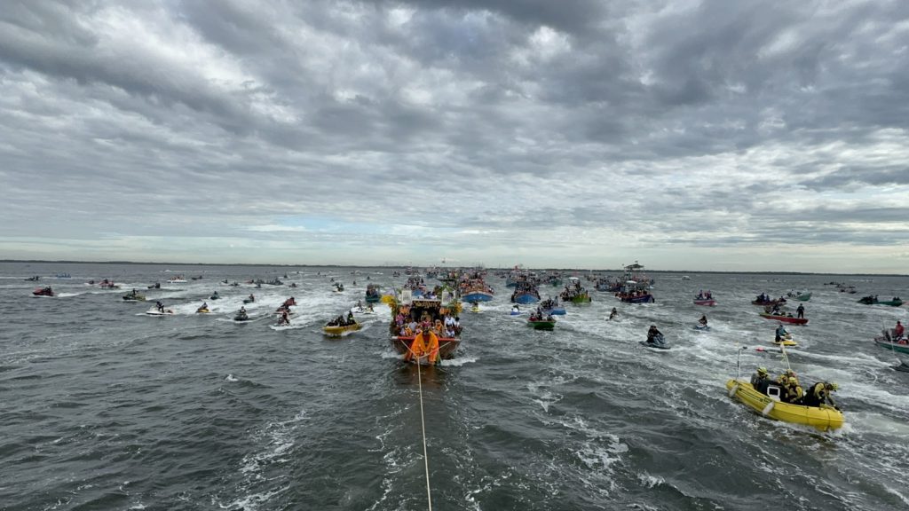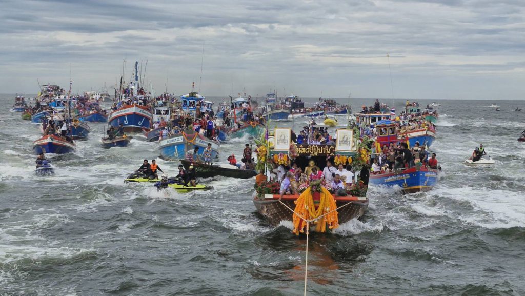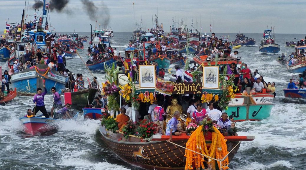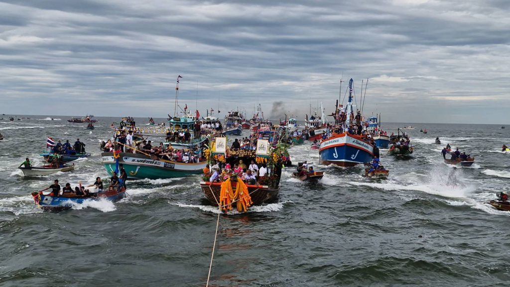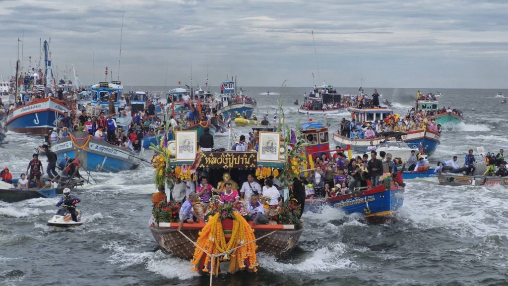 ศรัทธาหลั่งไหล เสียงประทัดกึกก้องทะเล หนึ่งเดียวในไทย แห่หลวงพ่อปานทางเรือ สุดอลังการ เรือประมงชาวบ้านร่วมขบวนแห่นับร้อยลำ