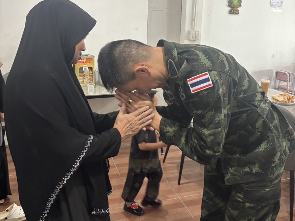 สงขลา – ผู้สื่อข่าวรายงาน เมื่อวันที่ 24 ตุลาคม 2568 เวลา 14.00 น. พันเอก เอกธวุฒิ คงคาเขตร ผู้อำนวยการโรงเรียนการเมือง ศูนย์สันติวิธี (ค่ายอิงคยุทธบริหาร) ต.บ่อทอง อ.หนองจิก ปัตตานี โดยคณะของท่านได้เดินทางไปยังอำเภอจะนะ จังหวัดสงขลา เพื่อร่วมแสดงความเสียใจและให้กำลังใจแก่ครอบครัวของ นายเจริญ หมะเห อดีตประธานชมรมสรรหาคนดีศรีทักษิณ ซึ่งได้ถึงแก่กรรมอย่างสงบ โดยได้เดินทางไปเข้าพบครอบครัว ที่ บ้านพักในอำเภอจะนะ จังหวัดสงขลา จึงขอแสดงความเสียใจอย่างสุดซึ้งกับ นางสาวมีนา (บุตรสาวของนายเจริญฯ) ปัจจุบันดำรงตำแหน่ง ผู้จัดการธรรมวิทยามูลนิธิ