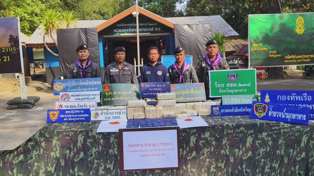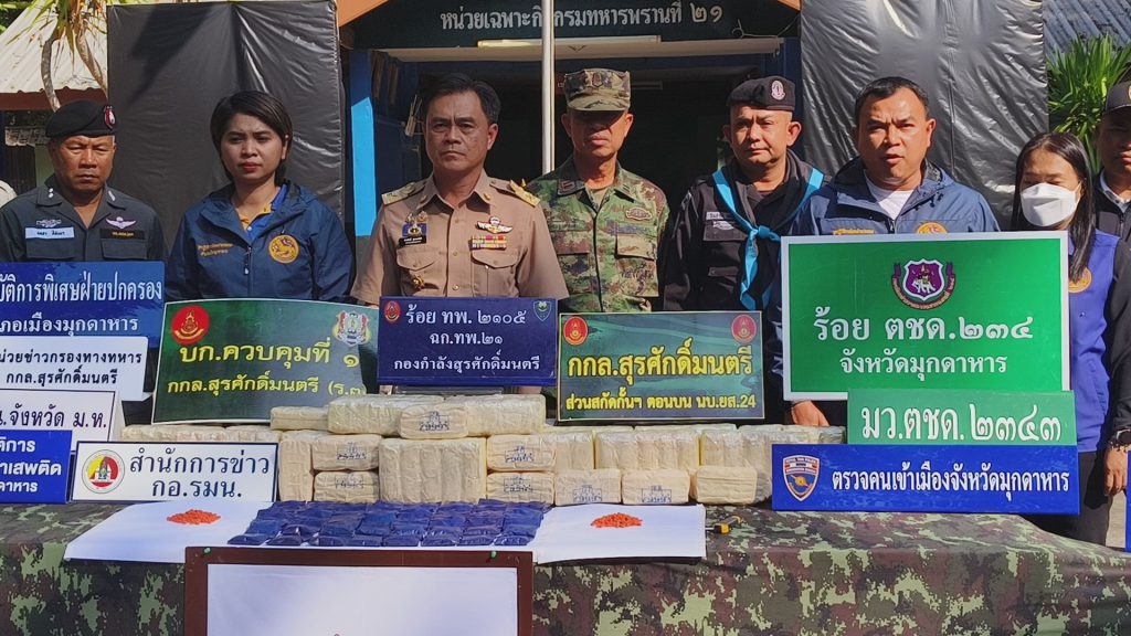 ฝ่ายปกครองเมืองมุกดาหาร ผนึกกำลัง ทหารพราน-ตชด. สกัดกั้นยาเสพติดข้ามชาติ ยึดยาบ้า 190,000 เม็ด ริมฝั่งโขง นายอำเภอเผยเข้มงวดตามวาระแห่งชาติ ด้านทหารพรานแฉแก๊งยาเปลี่ยนแผนใช้ “กองทัพมด” ทยอยขนเลี่ยงการจับกุมล็อตใหญ่