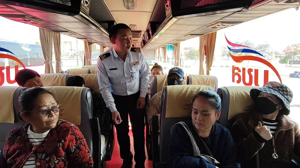 ในพิธีมีนายอรรถวิท รักจำรูญ กรรมการผู้จัดการใหญ่ บริษัท ขนส่ง จำกัด (บขส.) นายสมหวัง อารีย์เอื้อ รองผู้ว่าราชการจังหวัดบึงกาฬ ท่านคำเพ็ด สิปะเสิด ผู้อำนวยการบริษัท SPS ท่องเที่ยวและขนส่งโดยสารภายใน–ต่างประเทศ จำกัด (สปป.ลาว) พร้อมด้วยผู้บริหารจากภาครัฐและเอกชนเข้าร่วมอย่างพร้อมเพรียง