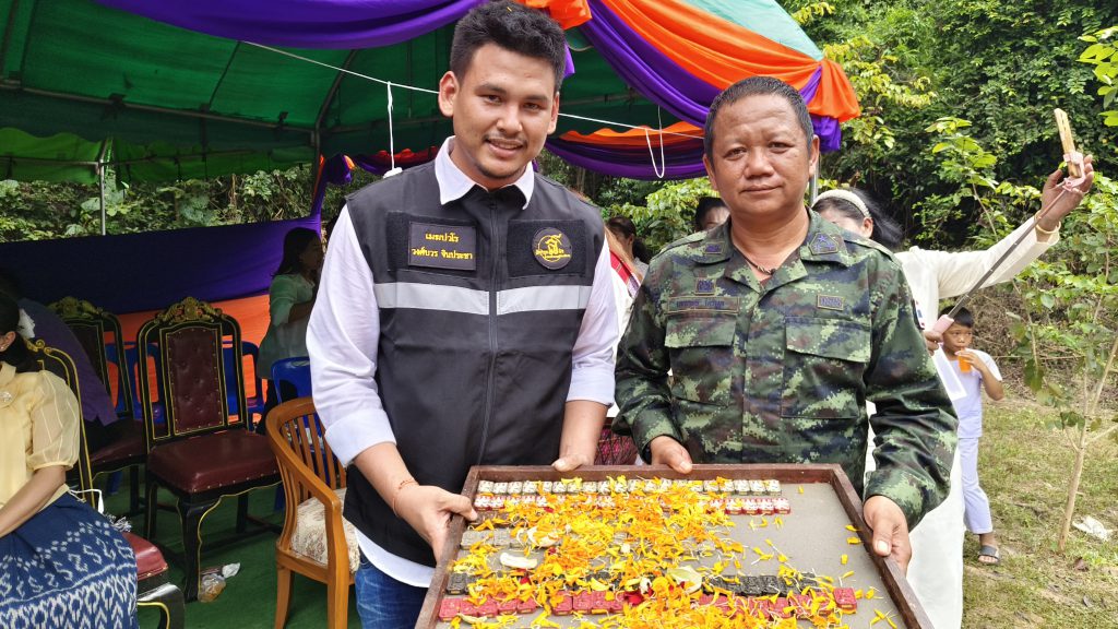 ที่มีการปะทะกัน และยังได้นำพลีมวลสารทั้งปลอกกระสุนปืน และหัวสบู่เลือด อายุ 100 ปี ที่นำลงมาจากภูมุย เทือกเขาพนมดงรัก มาเป็นมวลสารปั้มพระผงกรุตสมิงชัยมงคล รูปสีธงชาติไทย สีทหารกล้า จำนวน 3,000 องค์ ซึ่งทุกองค์จะมีเลขโค้ดกำกับทุกองค์ เพื่อมอบให้กับทหารกล้า ตามแนวชายแดน ทั้ง 4 จังหวัด เพื่อไว้ป้องกันตัว ในการรู้รบ แคล้วคลาด ปลอดภัย