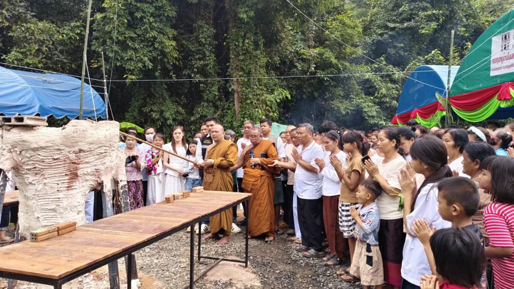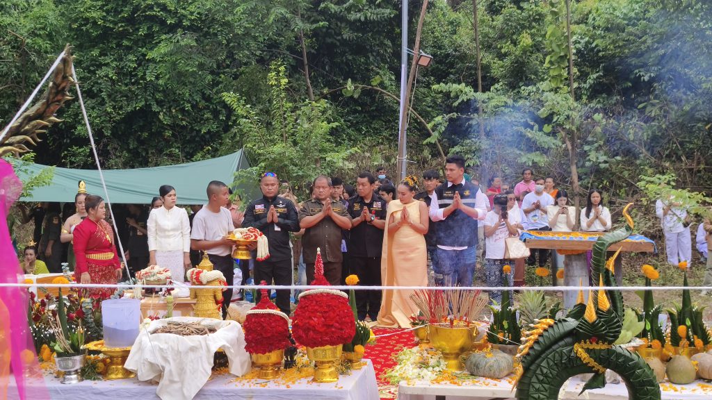 พร้อมกับญาติโยมที่รู้ข่าว เดินทางมาร่วมพิธีนับพันคน โดยมีพิธีบวงสรวงท้าวเวสสุวรรณ พิธีบวงสรวงปลอกกระสุนปืนใหญ่ของทหารไทย ที่ยิงสู้รบกับฝ่ายตรงข้าม จนชนะ นำมาเป็นมวลสารในการหลอม เพื่อเทหล่อเป็นพระกรุตสมิงมิ่งมงคล หน้าตักกว้าง 30 เซนติเมตร จำนวน 5 องค์ นำประดิษฐานยังค่ายทหาร 4 จังหวัด คือ จังหวัดบุรีรัมย์, สุรินทร์ ศรีสะเกษ และจังหวัดอุบราชธานี