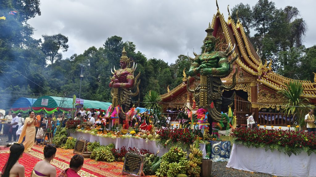 ขนาด หน้าตัก 30 นิ้ว จำนวน 5 องค์ และพลีมวลสารปั้มเป็นพระผง กรุตสมิงชัยมงคล อีกจำนวน 3,000 องค์ โดย พระครูปิยวนารักษ์ ได้มอบใบปราศเกียรติคุณ แด่ผู้ที่มาร่วมบุญกัน ร่วมเป็นเจ้าภาพกันตามศรัทธา ผ่านมัคทายกวัด ขณะเดียวกัน ได้มีมูลนิธิกู้ภัยศรีสัตนาคา จากจังหวัดนครพนม นำโลงศพมามอบให้กับกู้ภัยบ้านจาน อำเภอเบ็ญจลักษ์ เพื่อบริการให้กับศพไร้ญาติ จำนวน 300 โลง นอกจากนั้น น้ำ ระพีพัฒน์ และบรรดาเหล่าดารานักแสดง ยังได้มอบข้าวสาร แก่ผู้ที่มาร่วมงานบุญในครั้งนี้ จำนวน 2,000 กิโล เป็นโรงทานข้าวสารมอบให้กับทุกคน