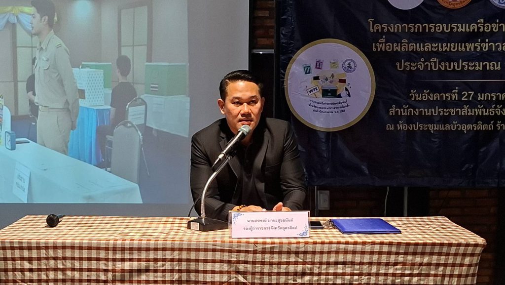 ประจำปีงบประมาณ พ.ศ. 2569 ซึ่งสำนักงานประชาสัมพันธ์จังหวัดอุตรดิตถ์จัดขึ้น เพื่อเสริมสร้างความรู้ ความเข้าใจ และเพิ่มประสิทธิภาพการทำงานด้านการประชาสัมพันธ์ให้แก่เครือข่ายในพื้นที่ โดยมี นางสาวนันทนีย์ ติบใจ ประชาสัมพันธ์จังหวัดอุตรดิตถ์ และ นายฉลองฤทธิ์ ศรีสูงเนิน ผู้อำนวยการการเลือกตั้งประจำจังหวัดอุตรดิตถ์ และหัวหน้าส่วนราชการร่วมด้วย