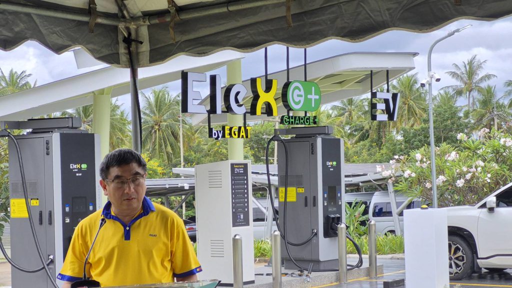 วันที่ 26 กันยายน 2568 นายเมธาวัจน์ พงศ์รดาภิรมย์ รองผู้ว่าการธุรกิจเกี่ยวเนื่อง (รวธ.) การไฟฟ้าฝ่ายผลิตแห่งประเทศไทย เป็นประธานในพิธีเปิดสถานีชาร์จ EleX by EGAT ณ ศูนย์การเรียนรู้ กฟผ. ทับสะแก Green Charging Station จังหวัดประจวบคีรีขันธ์ ซึ่งได้ร่วมกับพันธมิตรสร้างเป็นสถานีชาร์จต้นแบบจากวัสดุที่เป็นมิตรต่อสิ่งแวดล้อม โดยได้รับเกียรติจาก นายปรีดา สุขใจ รองผู้ว่าราชการจังหวัดประจวบคีรีขันธ์ พร้อมด้วย Mr.Goh Chee Kiong ประธานเจ้าหน้าที่บริหาร