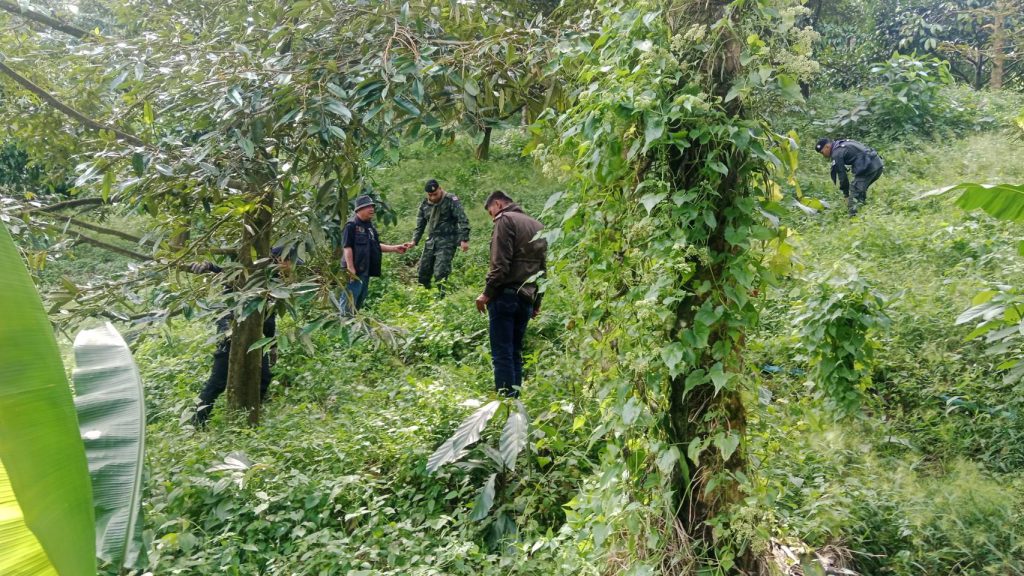 เมื่อเจ้าหน้าที่มาถึงที่เกิดเหตุ บ้านหลังดังกล่าวตั้งอยู่ลึกเข้าไปในสวนทุเรียน พบนาย ณัชนนท์ ชุ่มแน่น อายุ 22 ปี อยู่ภายในห้องนอน เจ้าหน้าที่ประกาศให้เปิดประตูออกมามอบตัว แต่ทันทีที่เห็นตำรวจ ผู้ต้องหากลับวิ่งหนีสุดชีวิตออกทางหลังบ้าน มุ่งหน้าสู่สวนทุเรียนหวังหลบหนีเข้าป่า
