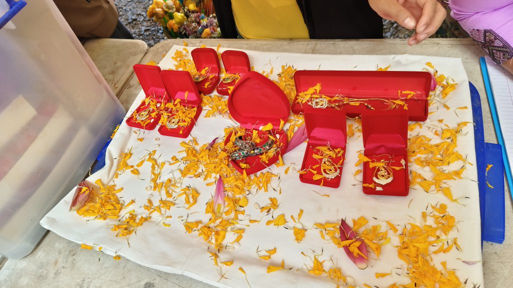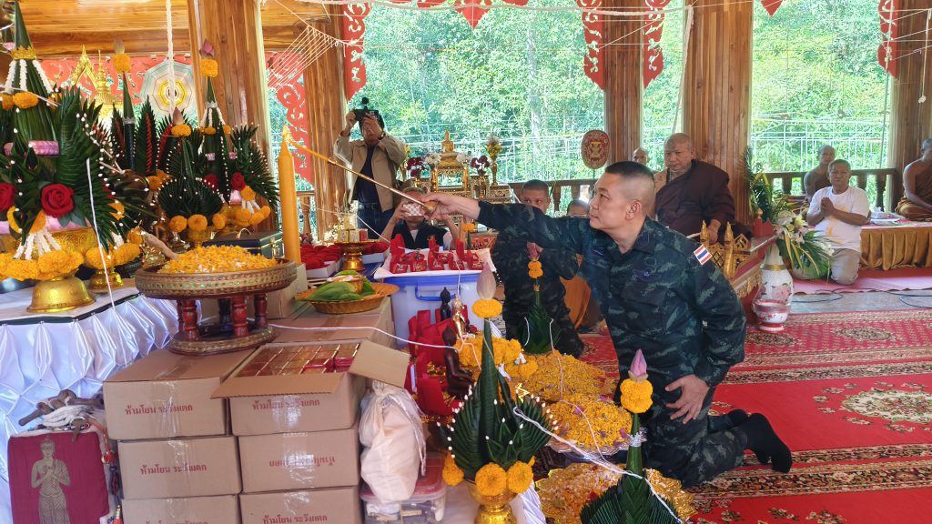 ซึ่งภายหลังจากได้จัดพิธีเทหล่อ เป็นองค์ พระพุทธกรุตสมิงชัยมงคล ขนาดหน้าตักกว้าง 39 นิ้ว สูง 1.99 นิ้ว จำนวน 4 องค์ เพื่อเตรียมนำไปตั้งยังฐานทหาร ที่รักษาอธิปไตยของไทย ทั้ง 4 จังหวัด คือ จังหวัดศรีสะเกษ ที่ฐานภูมะเขือ, จังหวัดสุรินทร์, จังหวัดบุรีรัมย์ และช่องบก จังหวัดอุบลราชธานี พร้อมมี “พระผงกรุตสมิงชัยมงคล” รุ่น “ปิตุภูมิพิทักษ์2568” ที่มีทั้งหมด 5 รูปแบบ ทั้งเป็นรูปสีธงชาติไทย, สีแดง, สีลายพรางทหารไทย, สีเขียวเข้ม และสีขาวพื้นน้ำตาล และบ่ายของวันนี้ ได้ทำพิธีพุทธาภิเษก โดยมี พันเอก สุรกิจ กาฬเนตร ผู้บังคับหน่วยเฉพาะกิจที่1 กองกำลังสุรนารี ร่วมเป็นประธานจุดเทียน