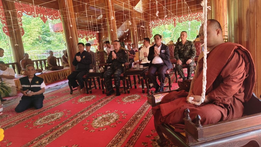 วันที่ 30 พฤศจิกายน 2568 ที่ ศาลาการเปรียญ วัดป่ากุดสมิง บ้านกุดสมิง ตำบลหนองหว้า อำเภอเบญจลักษ์ จังหวัดศรีสะเกษ ในช่วงเมื่อคืนที่ผ่านมา ได้มีพ่อขาว – แม่ขาว ได้มาร่วมสวดมนต์ข้ามคืน ร่วมปฎิบัติธรรม สมโภชน์ พระพุทธกรุตสมิงชัยมงคล ที่ เทหล่อจากปลอกลูกกระสุนปืนใหญ่ ที่ทหารไทย ยิงปะทะชายแดน ไทย – กัมพูชา ในช่วงเดือนกรกฎาคม 2568 ที่ผ่านมา จนได้รับชัยชนะ สามารถขึ้นไปตียึดฐานภูมะเขือ มาได้เป็นผลสำเร็จ ก่อนที่นายทหารจะได้นำปลอกกระสุนปืนใหญ่มาถวายให้กับ พระครู สมนึก ปิยะสีโล เจ้าอาวาสวัดกุดสมิง