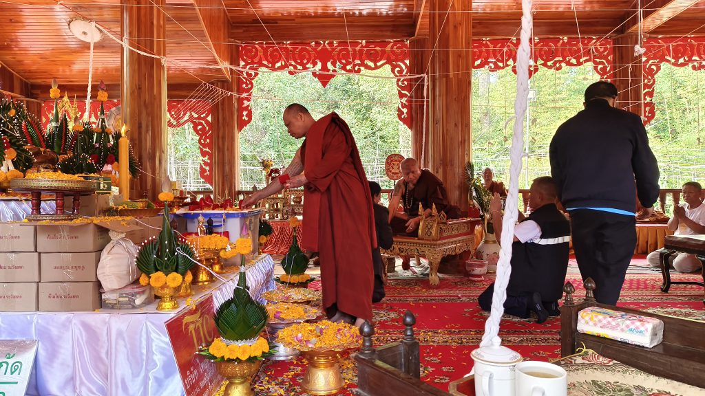 ที่ขอนำมาวางร่วมในพิธีอีดเป้นจำนวนมากด้วย โดยภายหลังจากที่คณะสงฆ์ ได้สวดพิธีพุทธราภิเษก เสร็จ ประธานฝ่ายฆารวาส ประธานฝ่านสงค์ ได้ร่วมประพรมน้ำพระพุทธมนต์ โปรยข้าวตอก ดอกไม้ ให้พรแก่ญาติโยม ที่มาร่วมพิธี ก่อนที่จะเปิดโอกาสให้ญาติโยม ร่วมร่วมบูชา “ปิตุภูมิพิทักษ์2568” ที่มีทั้งหมด 5 รูปแบบ ที่เป็นการบูกชาแบบสุ่ม ว่าเมื่อเปิดกล่องออกมา จึงจะทราบารู้ได้ว่า ได้รุ่นสีอะไรไปบูชา และจากนี้ญาติโยม ที่ประสงค์อยากจะได้ไปบูชา ปกป้องคุ้มครองตนเอง เรียกทรัพย์อุดม ค้าขายร่ำรวย ก็วสามารถมาขอบูชาได้ที่วัดกุดสมิง และจะได้ทำการประสานทหาร เพื่อเตรียมนำ พระพุทธกรุตสมิงชัยมงคล ที่เทหล่อด้วยปลอกลูกกระสุนปืนใหญ่ ขนาดหน้าตักกว้าง 39 นิ้ว สูง 1.99 นิ้ว จำนวน 4 องค์ เพื่อเตรียมนำไปตั้งยังฐานทหาร ที่รักษาอธิปไตยของไทย ทั้ง 4 จังหวัด และนำพระผง 5 สี ไปมอบให้ทหารที่ฐาน ด้วย
