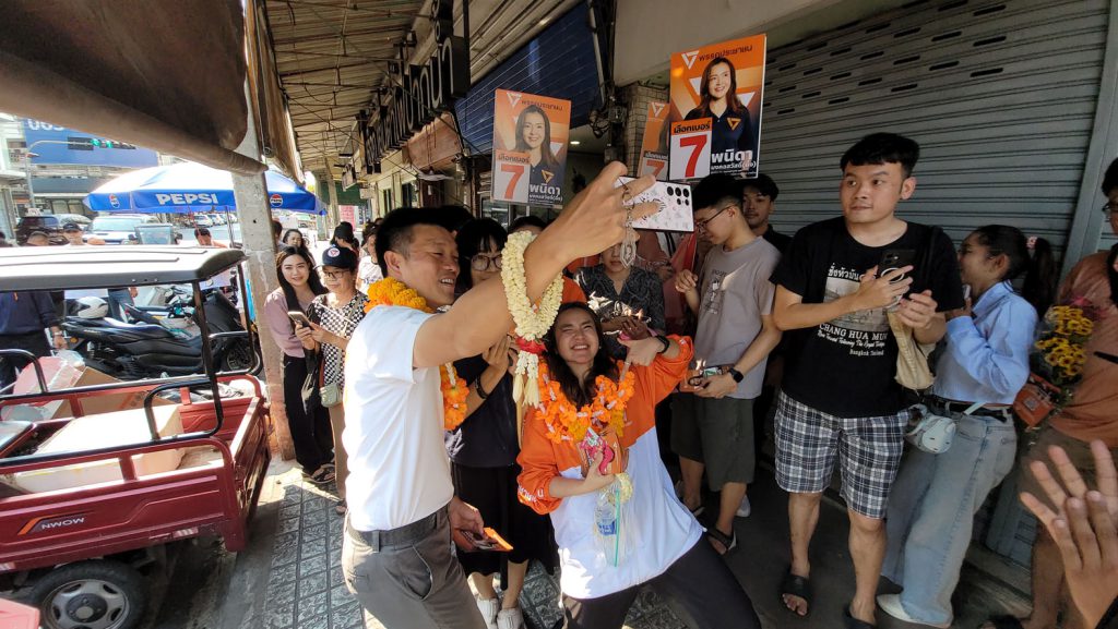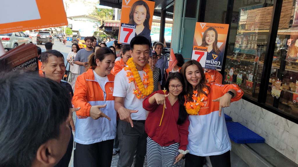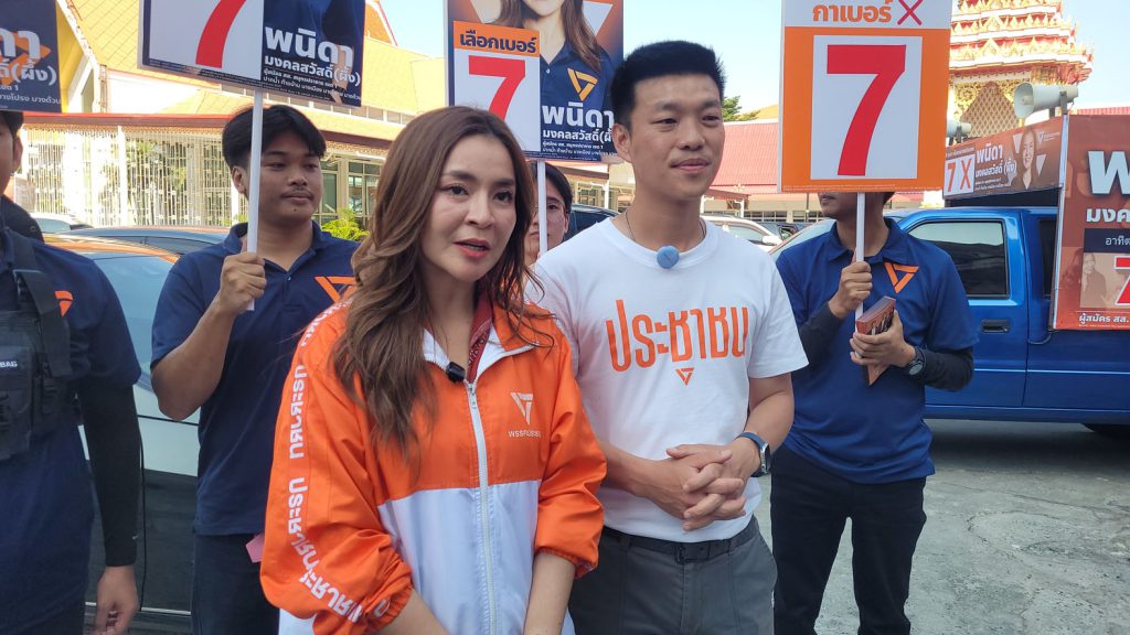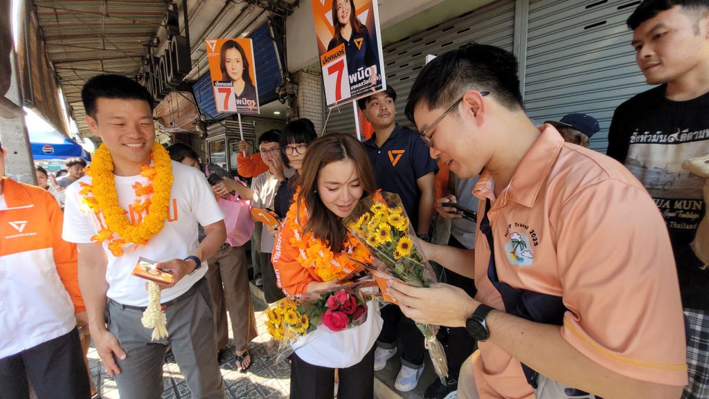 มอบความไว้วางใจกับพรรคก้าวไกลยกสีส้มทั้งจังหวัด วันนี้ที่ตัดสินใจมาลงเขตพื้นที่ที่นี้เพราะเราไม่เคยมองว่าประชาชนคนใดมีเจ้าของเราไม่เคยประมาทถึงแม้จะเป็นพื้นที่ที่เราชนะการเลือกตั้งค่อนข้างเยอะแต่เราก็ยังอยากกลับมาหาพ่อแม่พี่น้องประชาชนมาให้ความเชื่อมั่นครับว่าพรรคประชาชนเนี่ยยังมีจุดยืนเหมือนเดิมวันนี้เลือกมาลงพื้นที่กับ สส. ผึ้ง