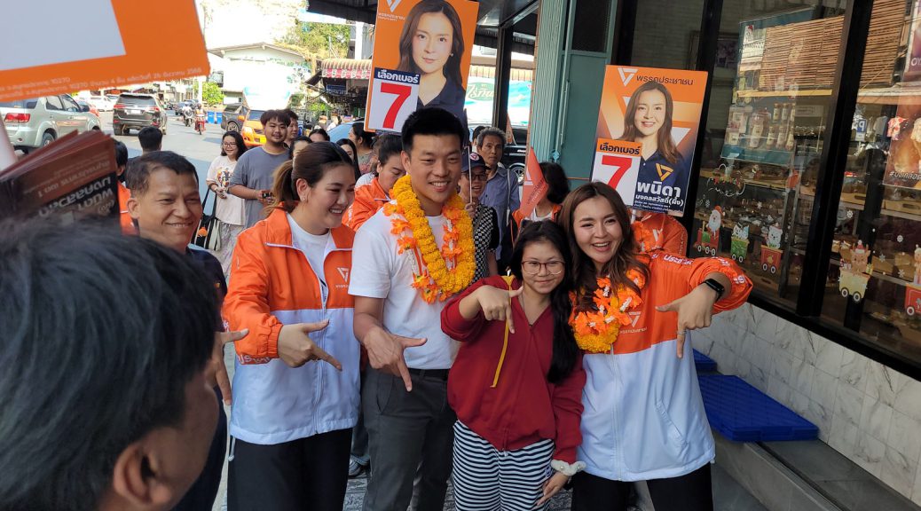 พื้นที่เขต1ที่เคยมอบความไว้วางใจให้กับผึ้งโดยตรงแล้วก็พบกับบรรยากาศที่ดีครับผ่านไปสองข้างทางพบว่าหลายๆคนออกมาโบกไม้โบกมือให้กำลังใจพวกเราเชื่อว่าสิ่งที่เราต้องทำหน้าอย่างเต็มที่ตอนนี้เนี่ยคือการบอกทุกๆคนว่าการเลือกตั้งครั้งนี้มีความหมายกับทุกคนมากจริงๆเพราะว่าไม่มีเสียง สว. มาโหวตเลือกนายกรัฐมนตรีแล้วหลายๆคนอาจ