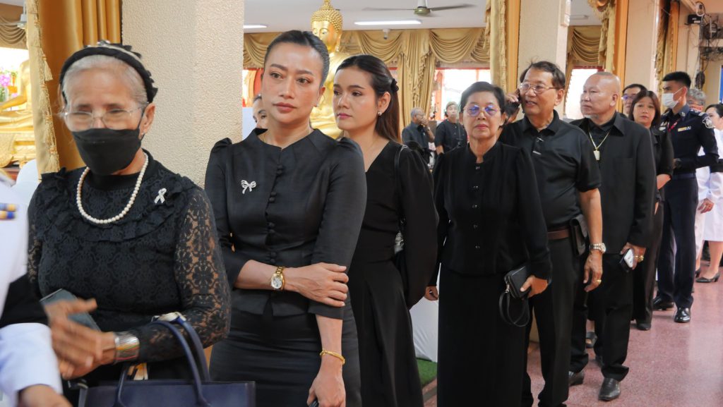 ผู้ว่าราชการจังหวัดสมุทรปราการ นำประชาชนทุกหมู่เหล่าถวายน้ำสรงพระบรมศพเบื้องหน้าพระฉายาลักษณ์สมเด็จพระนางเจ้าสิริกิติ์พระบรมราชินีนาถ พระบรมราชชนนีพันปีหลวงน้อมรำลึกถึงพระมหากรุณาธิคุณ และถวายความอาลัย พระผู้เสด็จสู่สวรรคาลัย