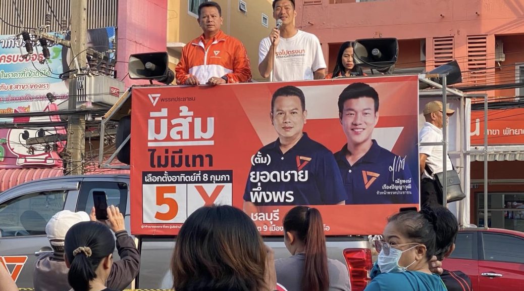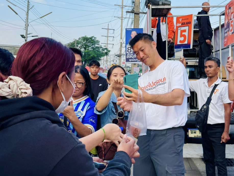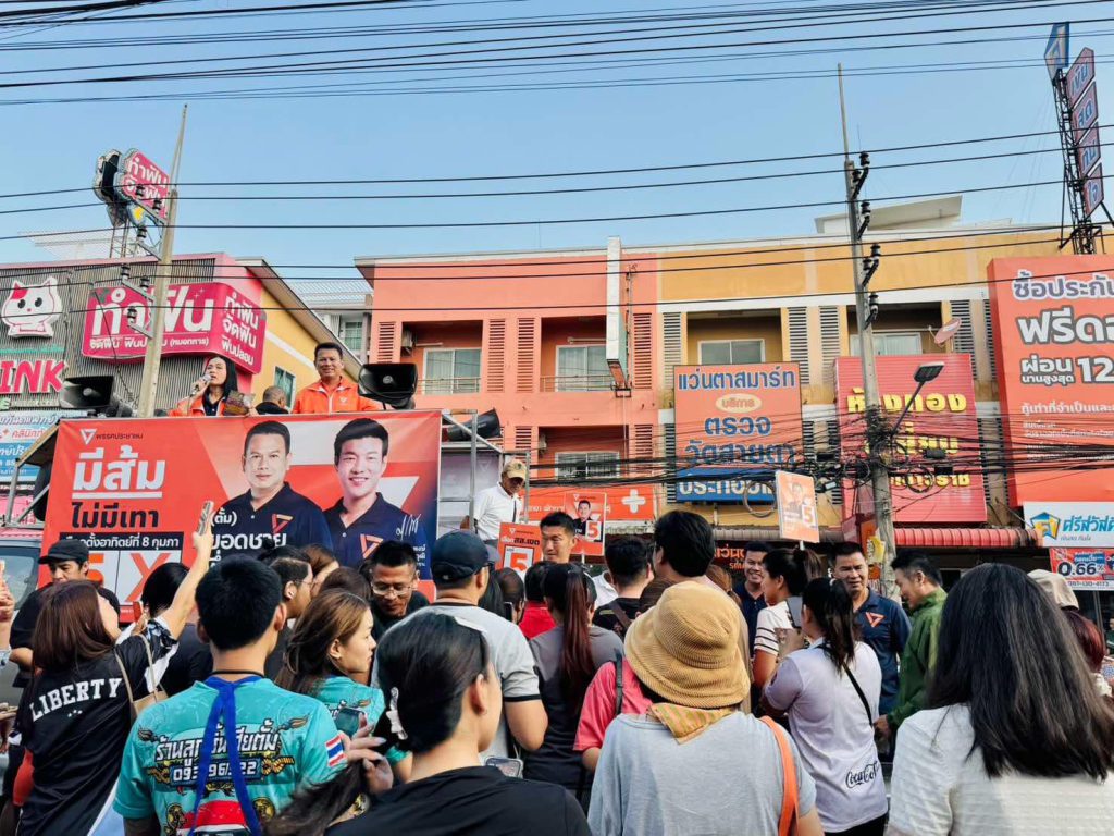 พร้อมทีมงานพรรคประชาชนได้ขึ้นรถกระบะพร้อมเครื่องขยายเสียงเปิดพื้นที่ปราศรัยหาเสียงเลือกตั้ง สส. ที่บริเวณหน้าศูนย์การค้ารัตนากร วนาสินธ์ (ตลาดวนาสินธ์) ต.หนองปรือ อ.บางละมุง จ.ชลบุรี