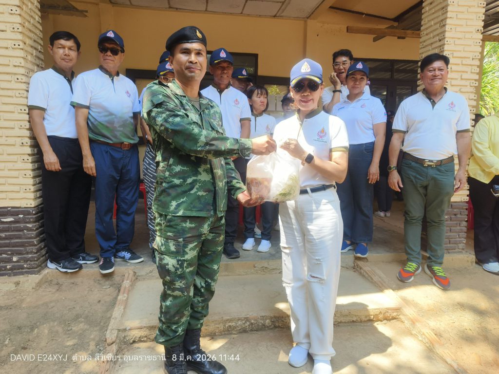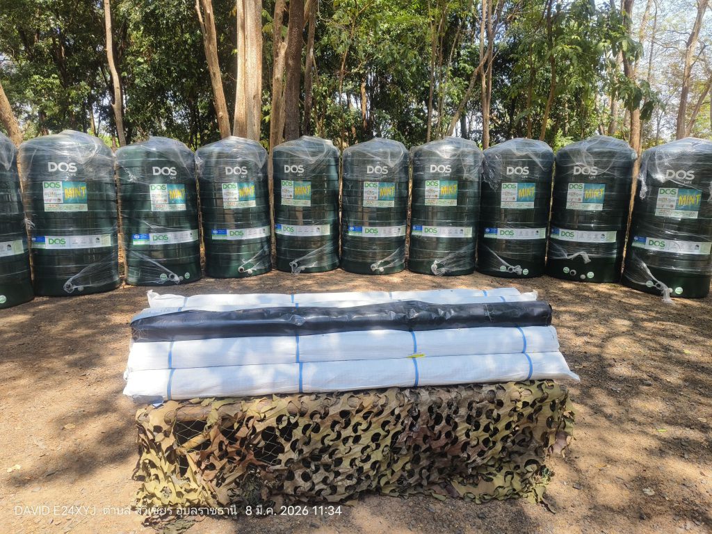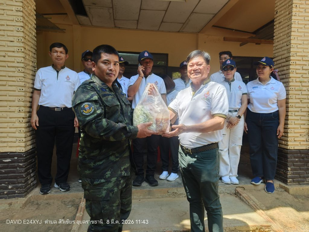 ในการนี้ คณะได้มอบถังเก็บน้ำดื่มขนาด 1,000 ลิตร จำนวน 10 ถัง พร้อมผ้ายางกันฝนสำหรับใช้ปรับปรุงฐานปฏิบัติการ เพื่อสนับสนุนการดำรงชีพและเพิ่มความพร้อมในการปฏิบัติภารกิจของกำลังพลที่ประจำการตามแนวชายแดน