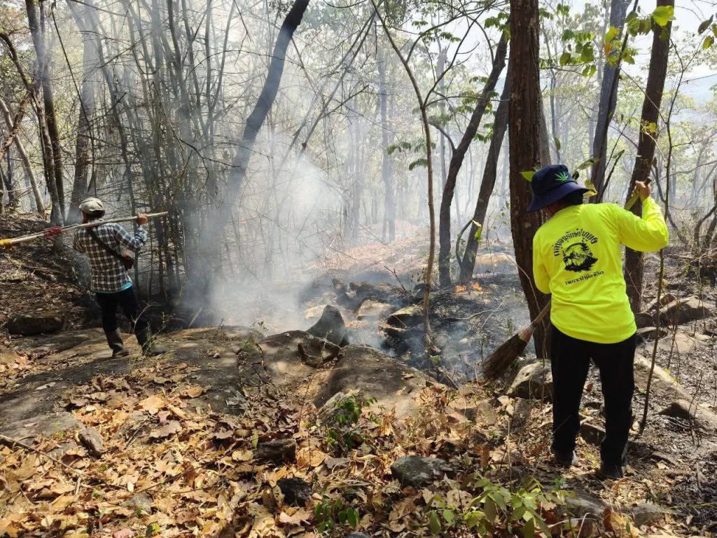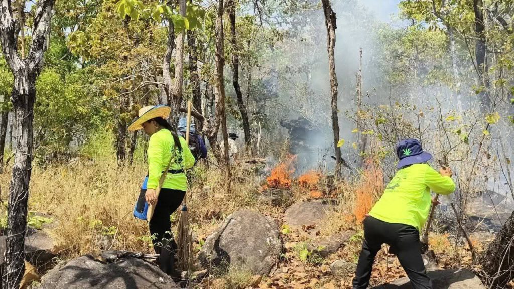 ขณะที่กลุ่มชาวบ้านประกาศจัดเวรยามเฝ้าระวังไฟป่าตลอด 24 ชั่วโมงเพื่อรักษาป่าผืนสุดท้ายของชุมชนไว้