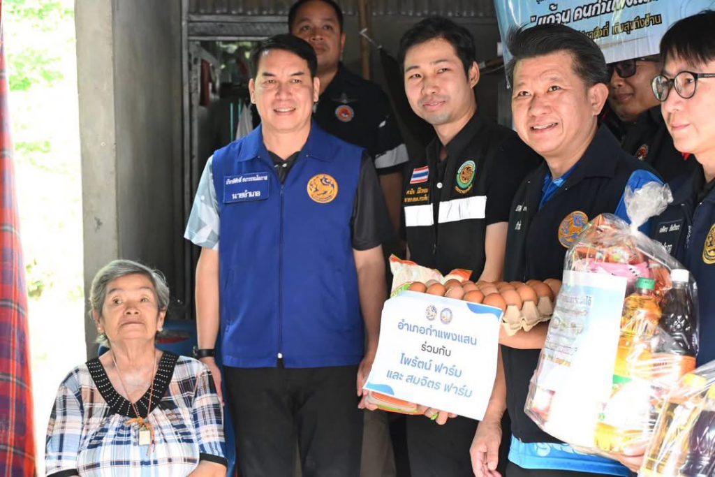 นายอำเภอไปหาถึงที่ เติมสุขถึงบ้าน ทั้งนี้ ได้มอบสิ่งของอุปโภคบริโภคที่จำเป็นที่ได้รับการสนับสนุนจาก วโรงงานไทยฟู้ดส์ จำกัด