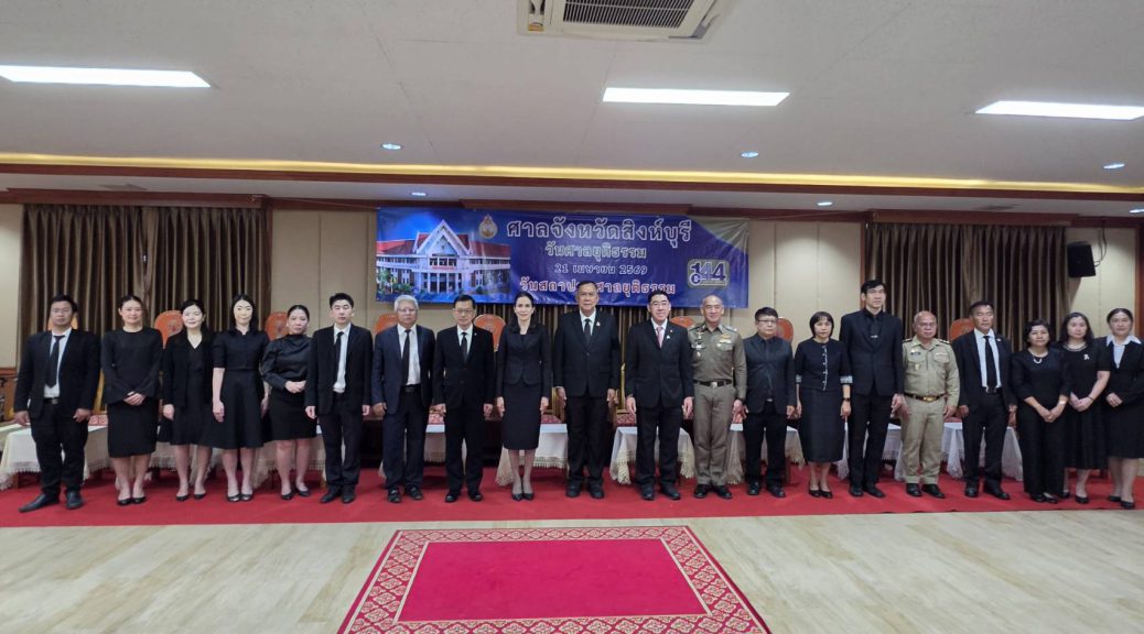เนื่องในงาน “วันสถาปนาศาลยุติธรรม ครบรอบ 144 ปี”ณ ศาลจังหวัดสิงห์บุรี โดยมีนายวราดิศร อ่อนนุช ผู้ว่าราชการจังหวัดสิงห์บุรี นางสาววีรวรรณ จันทนเสวี รองผู้ว่าราชการจังหวัดสิงห์บุรี พร้อมด้วยคณะผู้พิพากษา อัยการ และเจ้าหน้าที่ในกระบวนการยุติธรรม เข้าร่วมอย่างพร้อมเพรียงกัน เพื่อน้อมรำลึกถึงพระมหากรุณาธิคุณของ