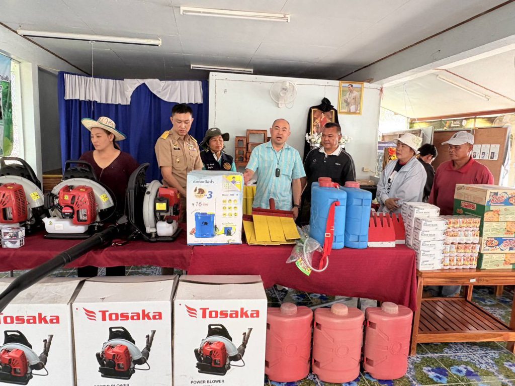 เครื่องเป่าใบไม้ยี่ห้อคาซากิ จำนวน 3 เครื่องไฟส่องสว่างติดศีรษะ จำนวน 6 ชุดไม้ตบดับไฟ จำนวน 6 ชุดเครื่องพ่นฉีดน้ำแบบสะพายหลัง จำนวน 10 ชุดชุดดับไฟป่า (ลาโค่) จำนวน 6 ชุดหน้ากาอนามัย จำนวน 20 ชุดมาม่ากึ่งสำเร็จรูป จำนวน 5 กล่อง