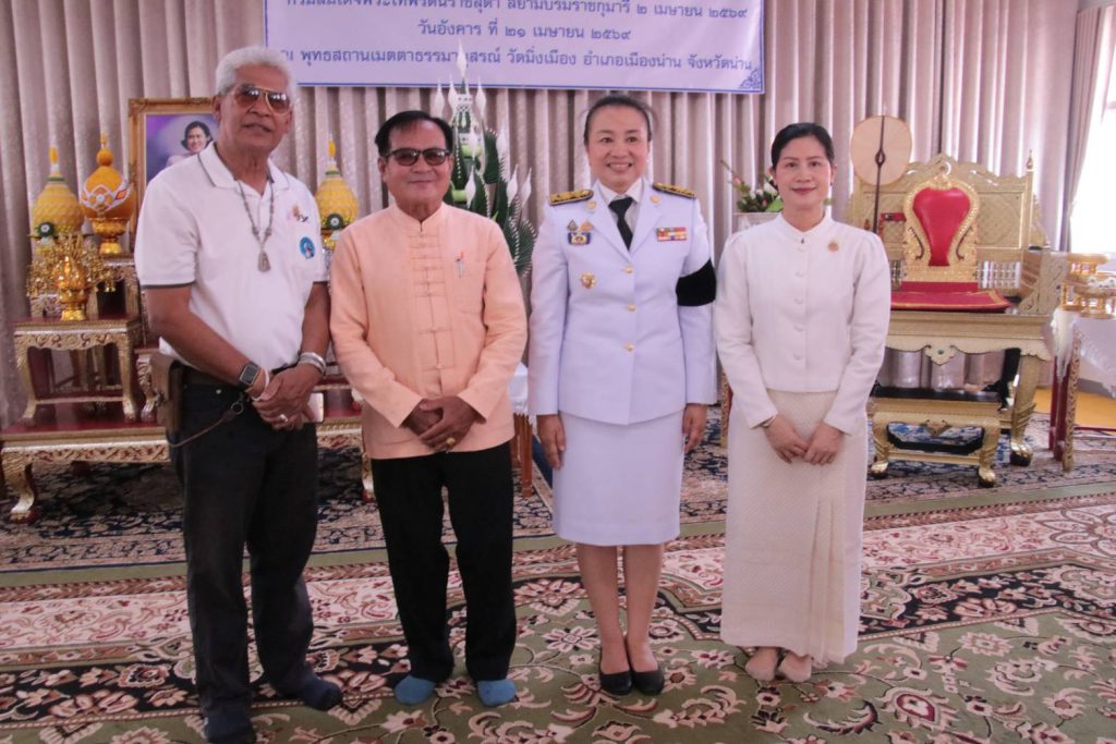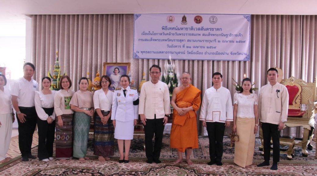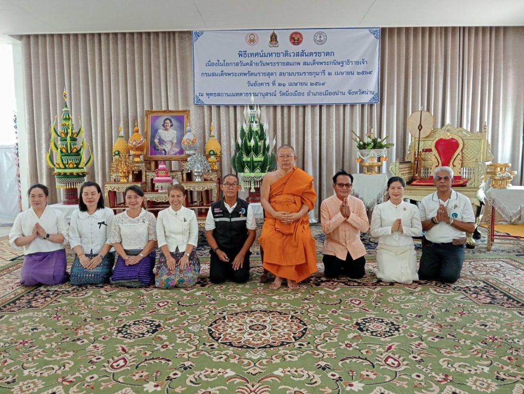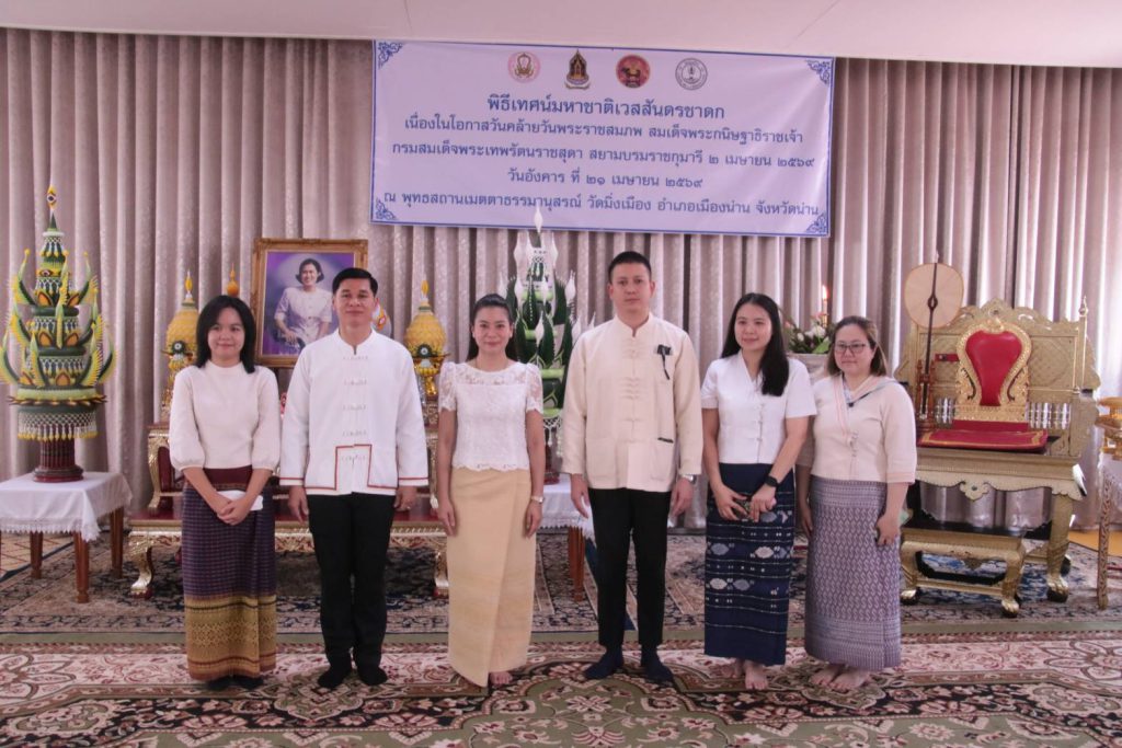 วันที่ 21 เมษายน 2569 เวลา 09.00 น. ที่พุทธสถานเมตตาธรรมานุสรณ์ วัดมิ่งเมือง อำเภอเมืองน่าน จังหวัดน่าน นางวิไลวรรณ บุดาสา รองผู้ว่าราชการจังหวัดน่าน เป็นประธานในพิธีเทศน์มหาชาติเวสสันดรชาดกเฉลิมพระเกียรติ โดยมีพระสุนทรมุนี รองเจ้าคณะจังหวัดน่าน เจ้าอาวาสวัดมิ่งเมือง พร้อมด้วยหัวหน้าส่วนราชการ หน่วยงานภาครัฐ ภาคเอกชน และประชาชนผู้มีจิตศรัทธาเข้าร่วมพิธี