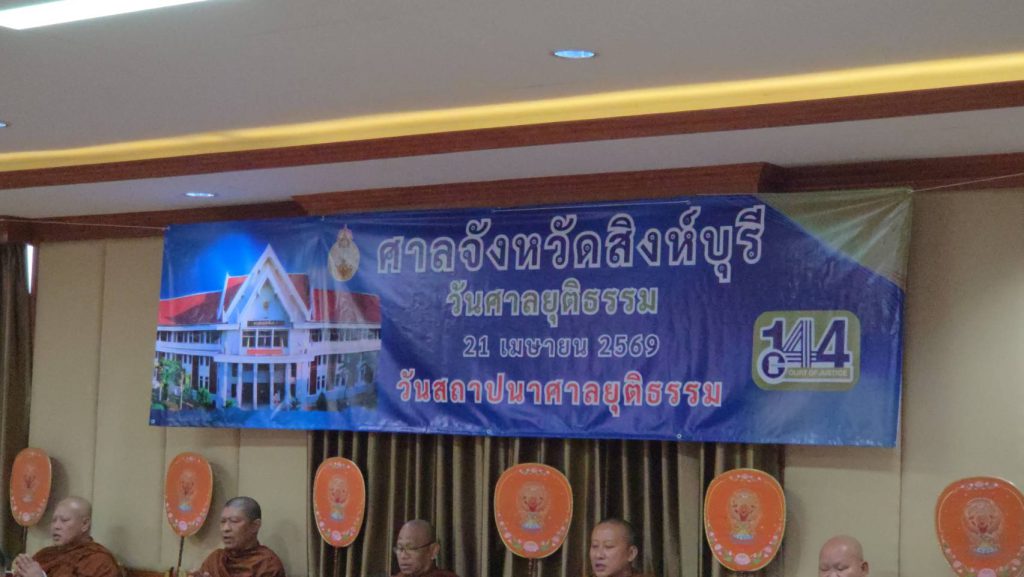 วันที่ 21 เมษายน 2569 เวลา 08.30 น. นางสาวธิดา ฟูเฟื่อง ผู้พิพากษาหัวหน้าศาลจังหวัดกบินทร์บุรี ช่วยทำงานชั่วคราวในตำแหน่งผู้พิพากษาหัวหน้าศาลจังหวัดสิงห์บุรี เป็นประธานในพิธี บำเพ็ญกุศลและประกอบพิธีทางศาสนา