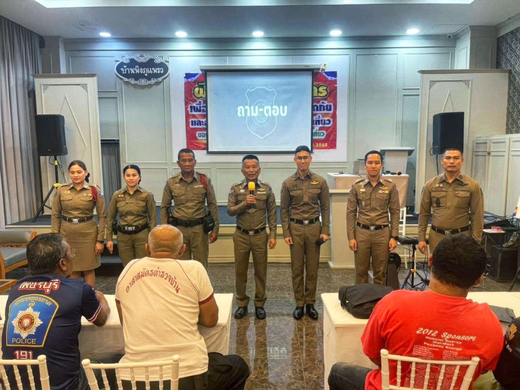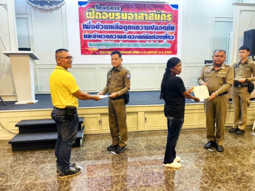 เมื่อวันที่ 24 ก.ย.68 ตามศูนย์ปฏิบัติการรักษาความปลอดภัยนักท่องเที่ยว (ศปทท.ตร.) พ.ต.อ.ประภาวิน ฉายโฉมเลิศ รอง ผบก.ทท.3, พ.ต.ท.วรพรต ผลานิสงค์ รอง ผกก.1 ทท.3, พ.ต.ท.อาณัฐชัย ก้อนทอง สวญ.ส.ทท.2 กก.1 บก.ทท.3 (ประจวบคีรีขันธ์), พ.ต.ต.ชโนวิทก์ สีเนหะ สว.ส.ทท.2 กก.1 บก.ทท.3 และตำรวจภูธรจังหวัดเพชรบุรี พร้อมผู้เข้ารับการอบรมอาสาสมัคร จำนวน 100 คน