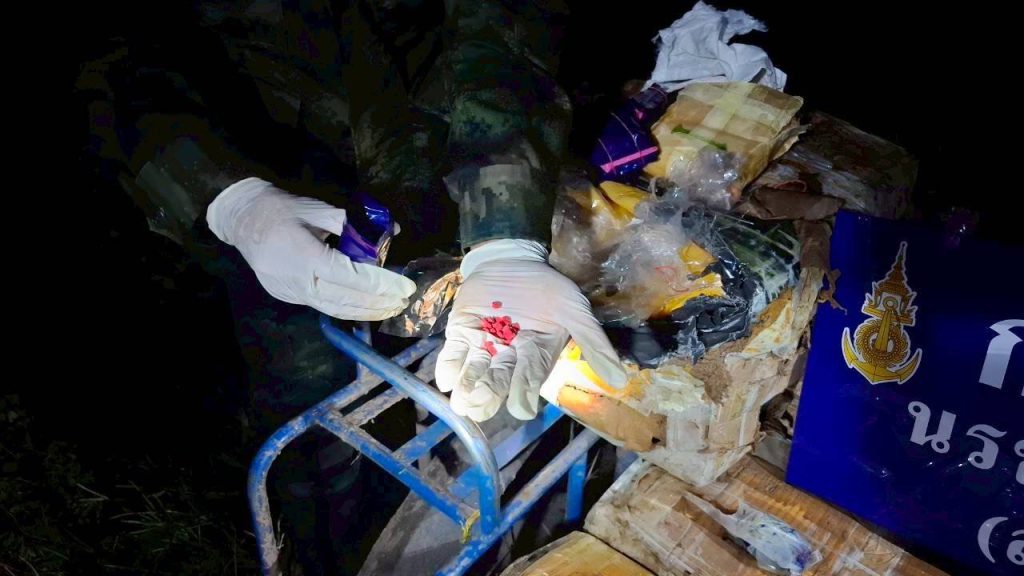 เจ้าหน้าที่เข้าตรวจสอบพื้นที่ พบลังกระดาษห่อด้วยถุงพลาสติกสีดำ จำนวน 5 ลัง ภายในบรรจุ ยาเสพติดให้โทษประเภท 1 (ยาบ้า) รวมประมาณ 1,000,000 เม็ด พร้อมตรวจยึด รถจักรยานยนต์พ่วงข้าง 1 คัน ที่ใช้ในการลำเลียงของกลาง ทิ้งไว้บริเวณริมฝั่งแม่น้ำโขง ด้านหลังป่าช้าบ้านห้วยดอกไม้ ตำบลโคกก่อง