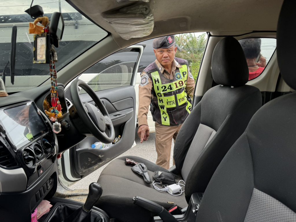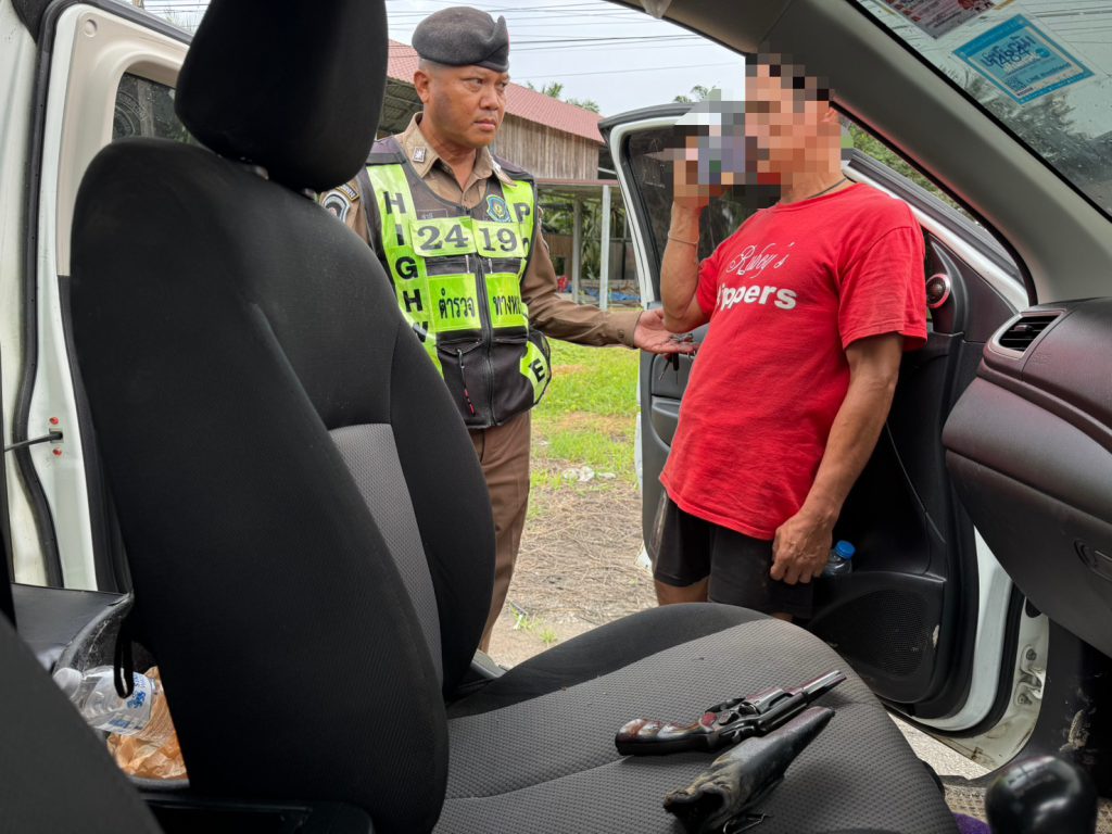 ซุกอยู่ใต้เบาะคนขับ พร้อมเครื่องกระสุนปืน 6 นัด และซองพกหนังสีดำ 1 ซอง โดยปืนดังกล่าวไม่มีหมายเลขประจำปืน ไม่มีทะเบียน และไม่มีเอกสารอนุญาตครอบครอง วันที่ 2 ตุลาคม 2568 ผู้สื่อข่าวได้รายงานจาก พ.ต.ท.กล้า สมบัติพิบูลย์ สว.ส.ทล.4 กก.2 บก.ทล.
