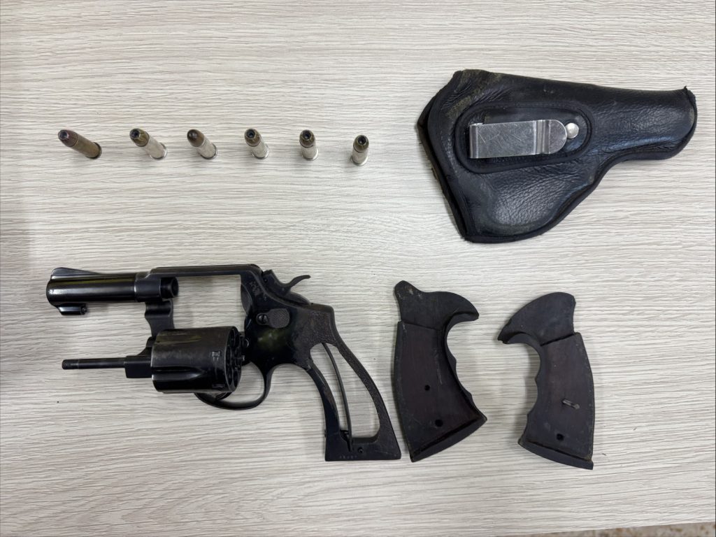 1.อาวุธปืนพกสั้นแบบลูกโม่ ขนาด .38 ยี่ห้อ สมิธแอนด์เวสสัน ขนาดลำกล้อง 3 นิ้ว ไม่มีหมายเลขประจำปืน ไม่มีหมายเลข ทะเบียนปืน จำนวน 1 กระบอก 2.เครื่องกระสุนปืน ขนาด .38 จำนวน 6 นัด 3.ซองพกหนังสีดำ 1 ซองเจ้าหน้าที่ทำบันทึกการจับกุมให้ผู้ถูกจับกุมรับสำเนาไว้เรียบร้อยแล้ว นำส่ง พงส. สภ.บ้านวิสัยเหนือ เพื่อดำเนินคดีตามกฎหมายต่อไป