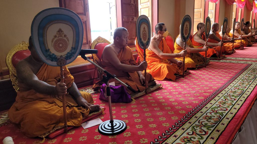 สมณศักดิ์ 9 รูป นายกเลิศเชาวน์ ลือชัย ประทาน จุดธูปเทียนบูชาพระรัตนตรัย อาราธนาศีล สมาทานศีล อาราธนาศีล สมาทานศีล อาราธนาพระปริตร พระสงฆ์เจริญพระพุทธมนต์ ถวายไทยธรรม พระสงฆ์อนุโมทนา กรวดน้ำรับพร เสร็จพิธี