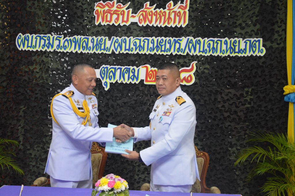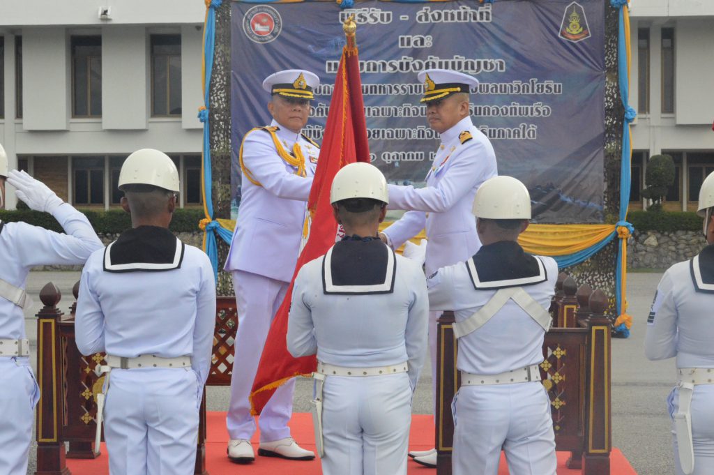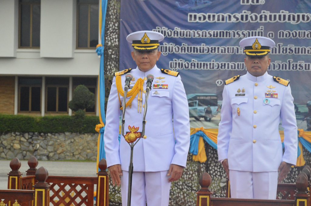 กองทัพเรือ/ผู้บังคับหน่วยเฉพาะกิจนาวิกโยธินภาคใต้ (คนเก่า) กับ นาวาเอก บัญญัติ วงศ์จำปา (คนใหม่) ตามคำสั่งปรับย้ายนายทหารประจำปีของกองทัพเรือ โดยมีการลงนามเอกสารรับ-ส่งหน้าที่ และมอบธงประจำหน่วย ท่ามกลางผู้บังคับบัญชาระดับรอง ผู้ใต้บังคับบัญชา และกำลังพลจากหน่วยนาวิกโยธิน หน่วยทหารพรานนาวิกโยธิน และหน่วยรบพิเศษนาวิกโยธิน ร่วมเป็นสักขีพยานอย่างพร้อมเพรียง