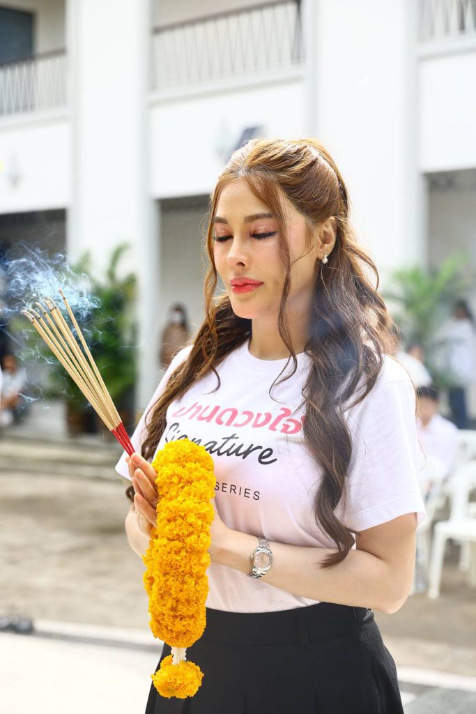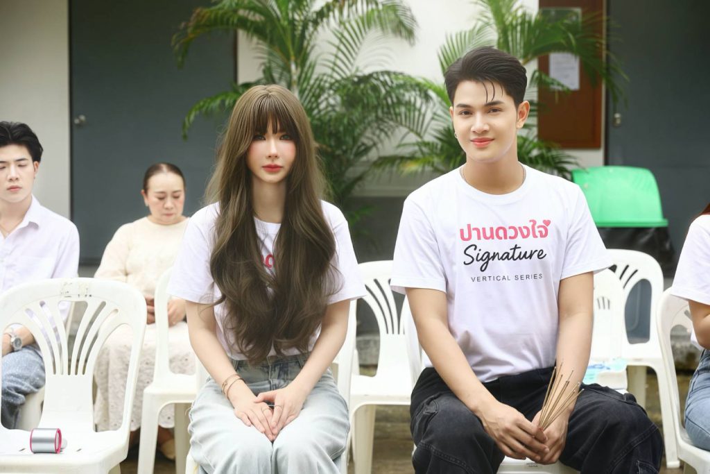 ถือฤกษ์ดีเสาร์ที่ 27 กันยายน 2568 เวลา 09.39 น. นักแสดงจากซีรีส์แนวตั้ง “ปานดวงใจ Signature” นำทีมโดยนางเอกน้องใหม่ เกลิน-ธัญรดี ชาญชนินท์กุล ควงคู่มากับพระเอกเคมีใหม่ เล้ง-ณัฐพล นิลดอนหวาย ที่พักจากงานซีรีส์วายมาสวมบทพระเอกในซีรีส์แนวตั้งแนวโรแมนติกดราม่า เข้าร่วมพิธีไหว้ขอพรองค์พระพิฆเนศร์ เอาฤกษ์เบิกชัยในการเปิดกล้องซีรีส์เรื่องนี้ ณ ลานพระพิฆเนศร์ สถาบันบัณฑิตพัฒนศิลป์ วังหน้า กรุงเทพ
